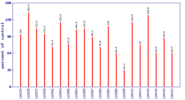 Relative pentanal level (percent of control)*